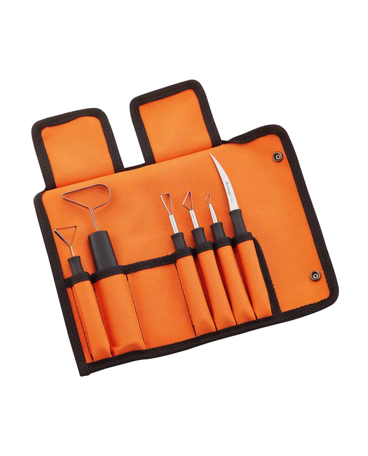 6-piece sculpting set „Villafane Studios in nylon roll bag for sculpting and carving pumpkin, sweet potato or chocolate. The set contains 1 paring knife and 5 special designed tools developed in close cooperation with renowned US-American pumpkin artist Ray Villafane.