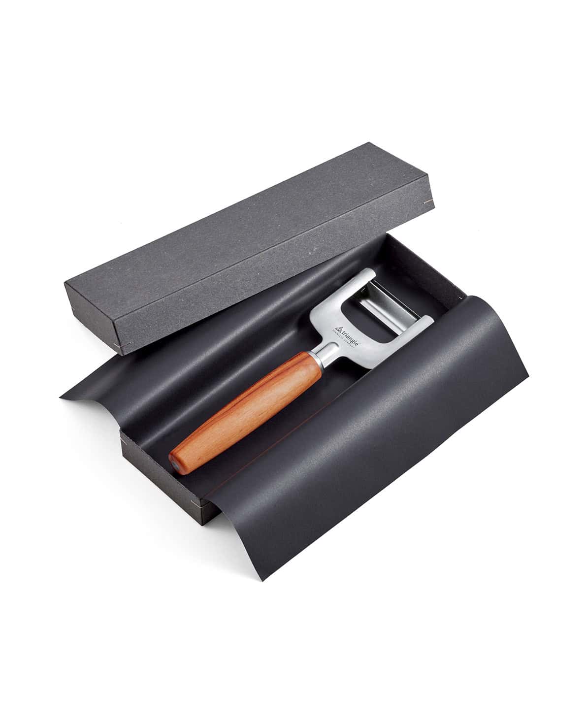 For Sense, triangle uses FSC – certified plum wood from regional orchards, thereby supporting sustainable timber management and short transport routes. The handles are turned in the Sauerland region of Germany, then finely finished in Solingen and assembled with functional parts made of stainless steel. Naturally, eco-electricity is used.