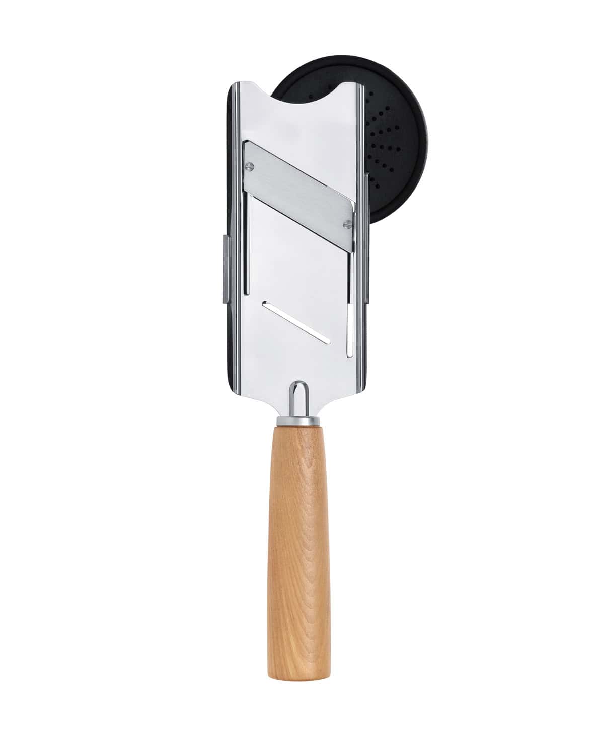 Extremely fine or medium-thick slices: The triangle fine slicer with endholder creates is infinitely variable. See-through truffle, garlic or parmesan slices or medium-thick potato, cucumber and zucchini slices are perfectly cut. The end-holder serves as a safety guard and assists at cutting the ingredient completely without any waste.
