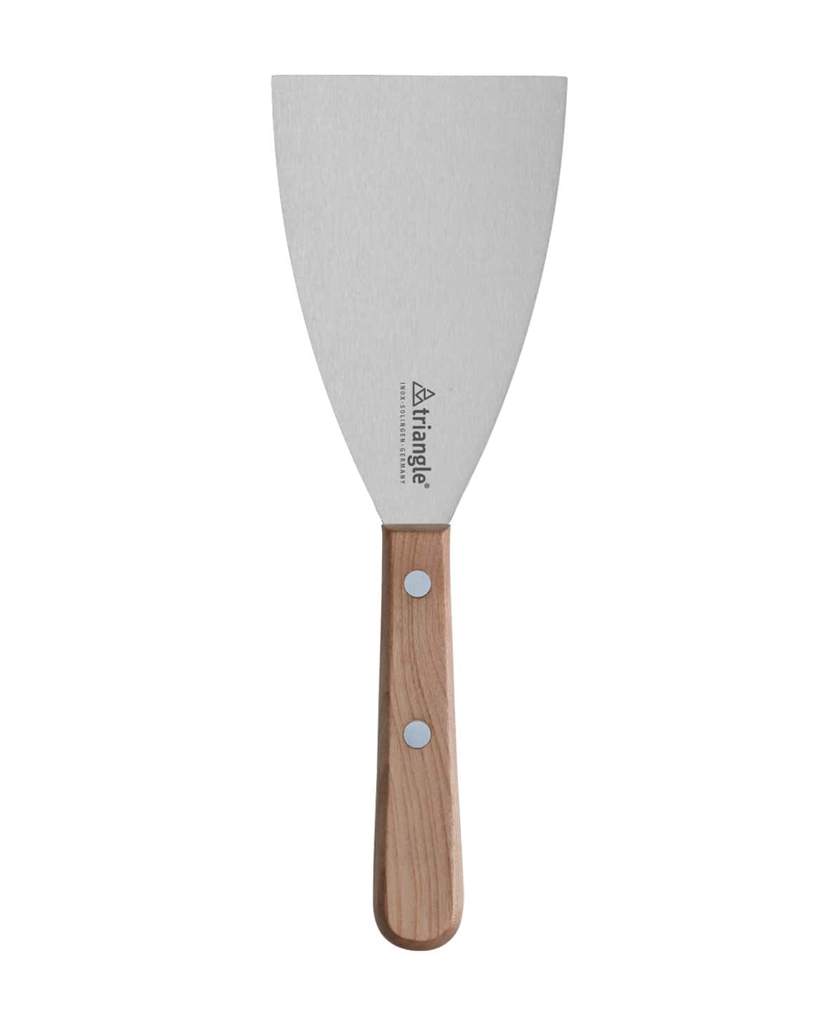 triangle spatulas are hardened and ground thinner towards the tip. Therefore, they are thin, springy and flexible at the functional area but firm and string at the rear part. The Germany cherry wood handle is hand riveted, trimmed and polished according to the Solingen craftsman’s tradition.