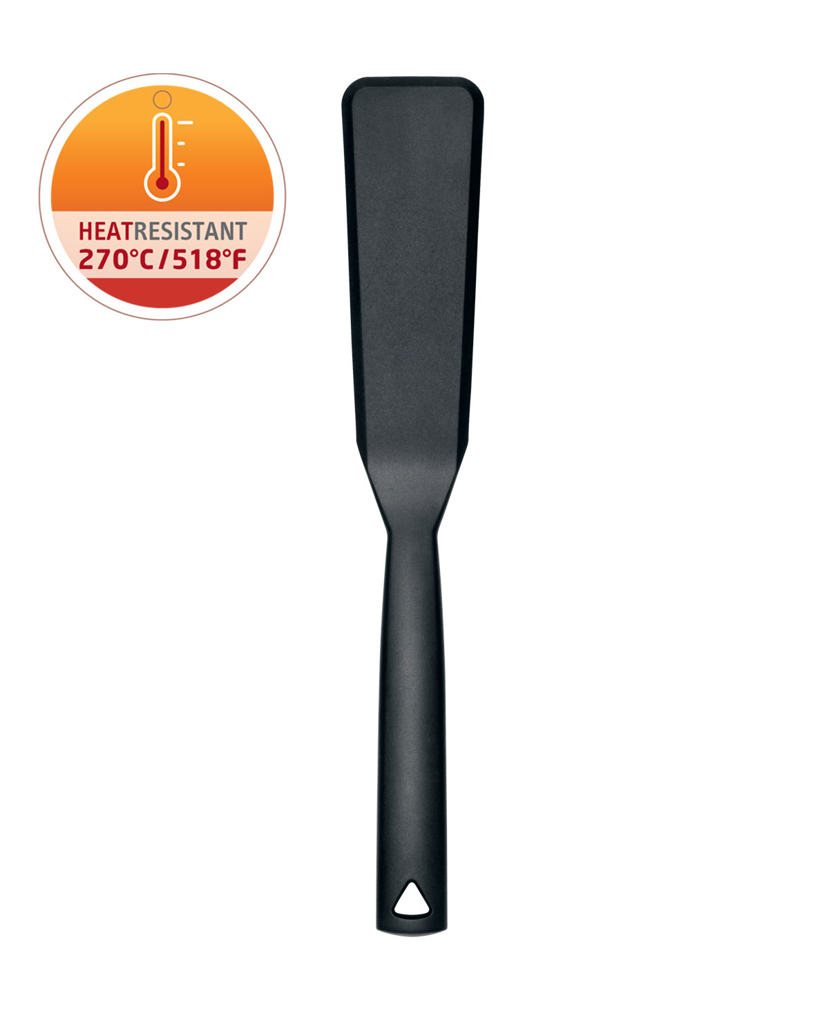 Stable and high temperature resistant spatula / turner for non-stick cookware. The high-quality special plastic is heat-resistant up to 270 ° C / 518° F, so that molten edges are a thing of the past. The slender shape with beveled edges is ideal for loosening pancakes and crepes and turning small foods.