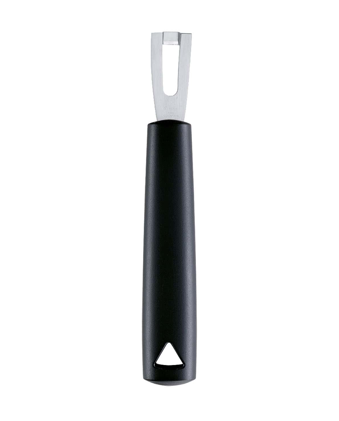 Das klassische Bartool in neuer, verbesserter Ausführung. Zum Schneiden von dekorativen Kerben in Obst und Gemüse und für Bänder aus Zitrusschale. Die V-Form schneidet tief in die Schale ein und ist daher ideal für Zitrone, Orange und Grapefruit. Die fest definierte Einkerbtiefe und -breite macht seine Handhabung besonders einfach und gewährleistet gelungene Ergebnisse.