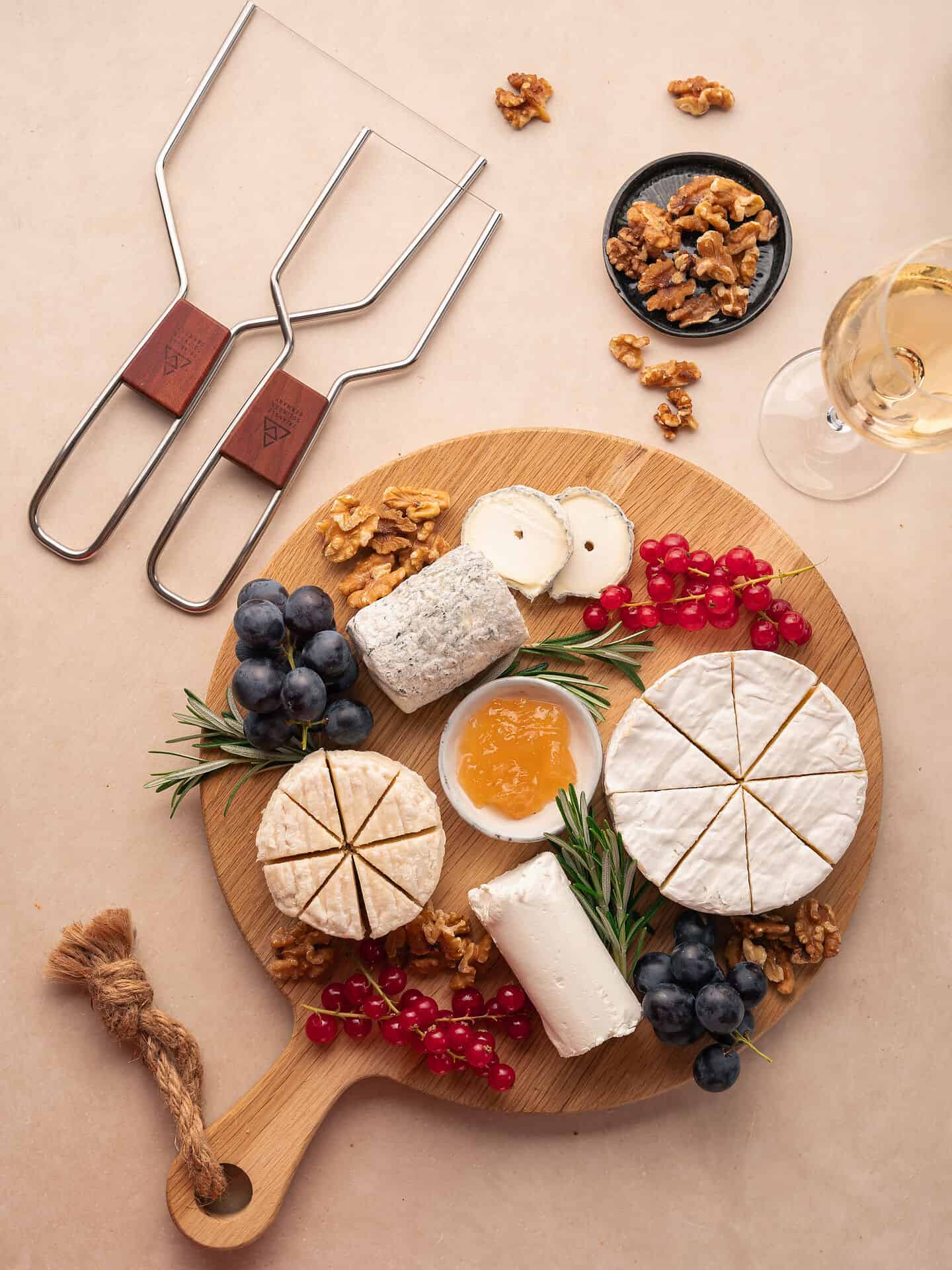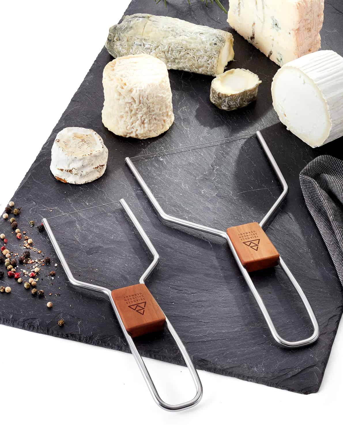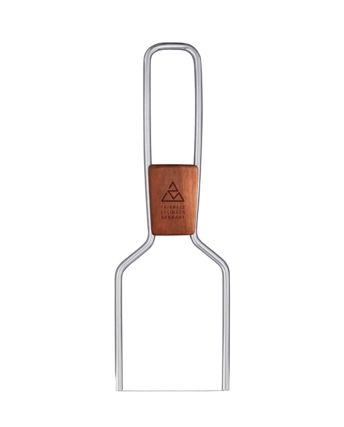 Die triangle Käselyra eignet sich hervorragend für Weichkäse, Frischkäse und Pasteten. Sie ist bei Tisch oder am Buffet auf jeder Käseplatte mit ihrem verschiebbaren Holzeinsatz aus FSC-zertifiziertem, deutschen Pflaumenholz ein echter Eyecatcher. Um die Drahtspannung einzustellen, lässt sich der Holzeinsatz beliebig verschieben.