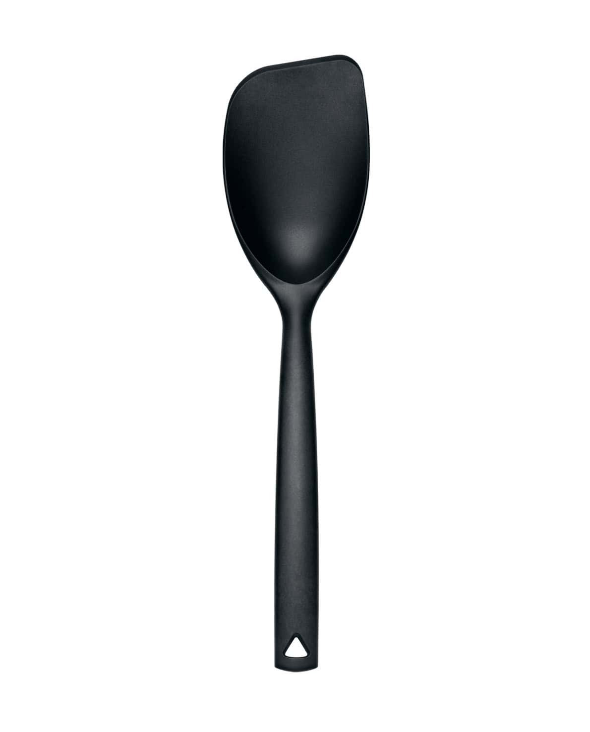 Stabiler und hoch temperaturfester Wok- und Pfannenlöffel für beschichtete Pfannen. Der hochwertige Spezialkunststoff ist bis zu 270° C hitzefest, so dass angeschmolzene Kanten der Vergangenheit angehören. Die breite Wende- und Löffelfläche ist besonders groß und die dünne Vorderkante gleitet einfach unter die Speisen. Das massive Griffdesign mit Aushängeloch liegt fest und bequem in der Hand. Eine kleine Nut auf der Rückseite des Griffes verhindert, dass der Wender in Schüsseln oder Pfanne rutschen kann. Spülmaschinengeeignet.