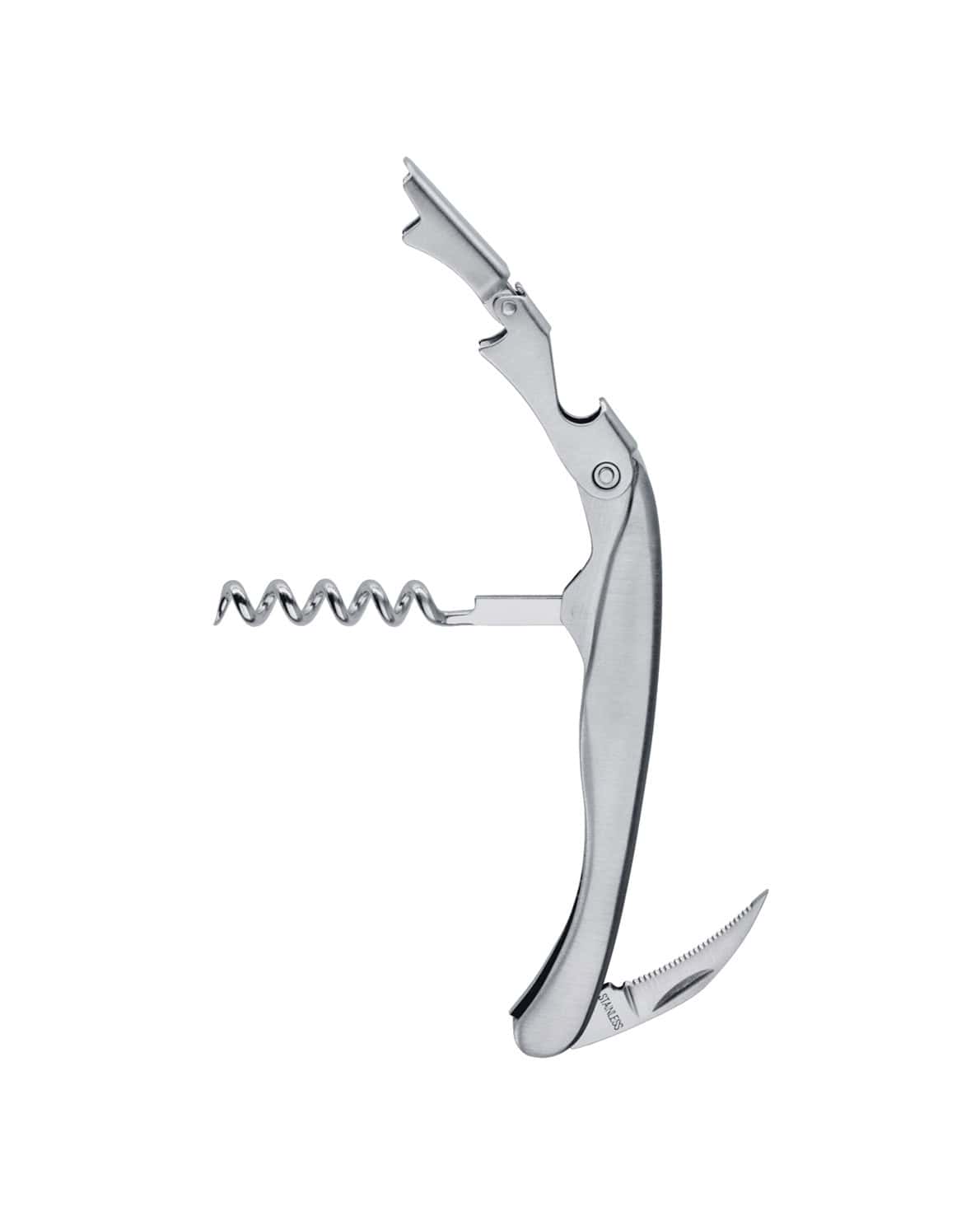 Kellnermesser in schwerer Qualität mit doppeltem Gelenk und feingezahnter Klinge zum Öffnen von Manschetten.