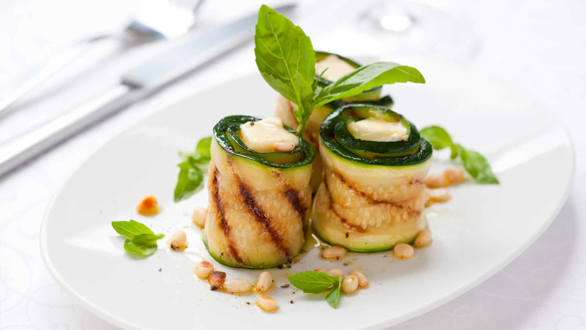 Warme Antipasti aus leckerem Halloumi-Grillkäse eingerollt in zarten Zucchinischeiben. Für die nächste Grillparty oder die Grillpfanne.