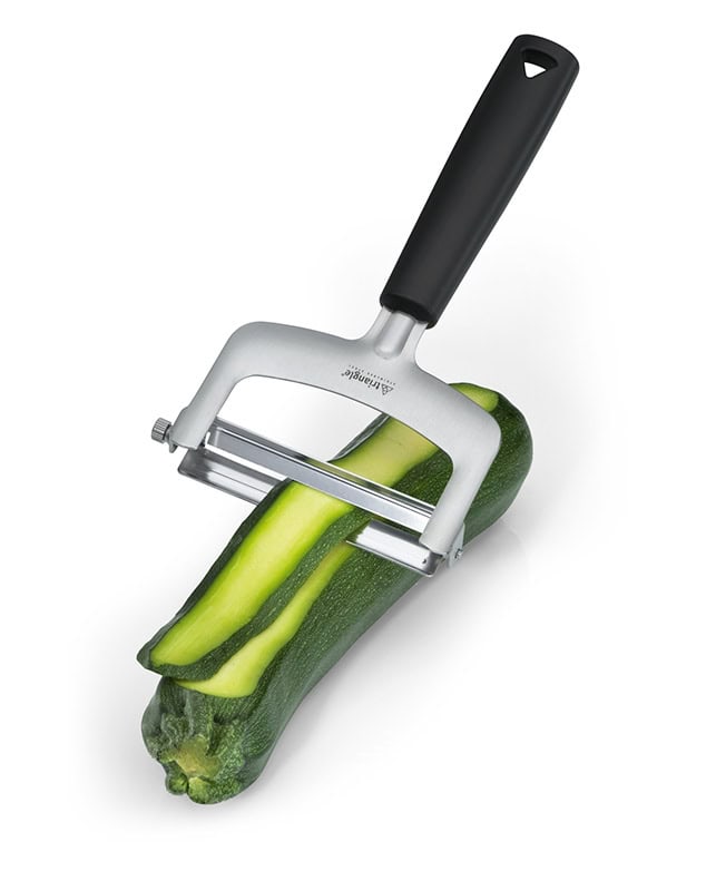 Tipp: Für gleichmäßig dünne Scheiben eignet sich besonders die Scheibenklinge des Julienneschneider-Sets oder Scheibenschneider-Set mit eingelegter 2mm-Klinge.